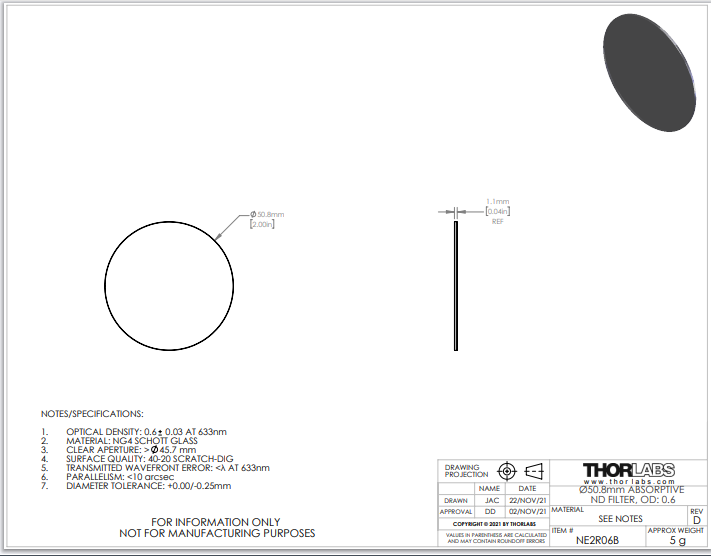 Thorlabs索雷博 NE2R06B 吸收型中性密度滤光片