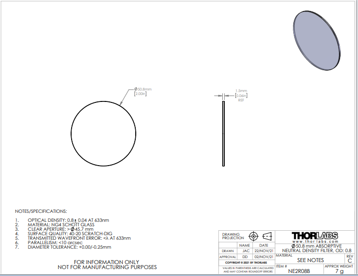 Thorlabs索雷博 NE2R08B 吸收型中性密度滤光片