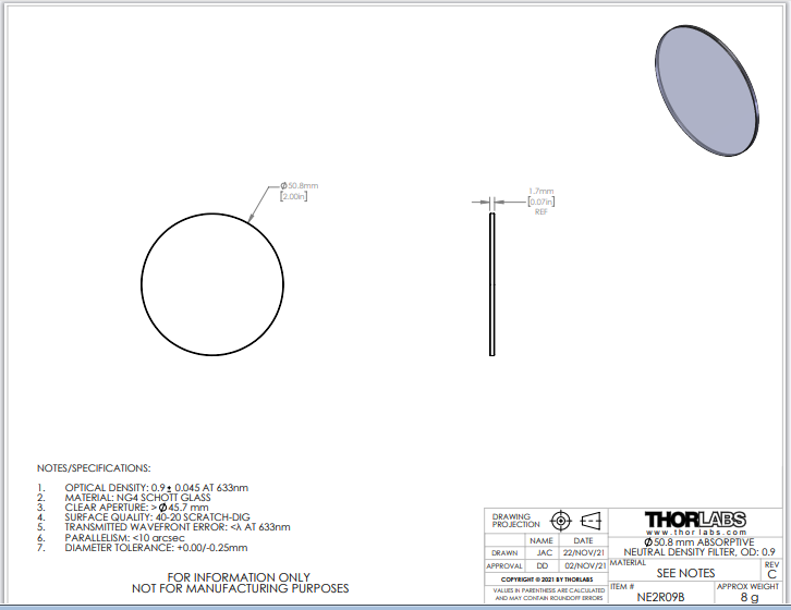Thorlabs索雷博 NE2R09B 吸收型中性密度滤光片