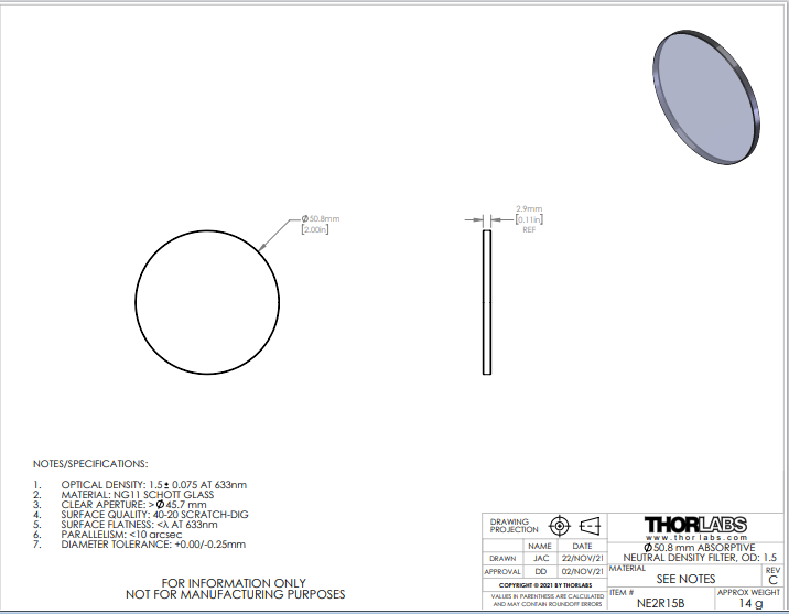 Thorlabs索雷博 NE2R15B 吸收型中性密度滤光片