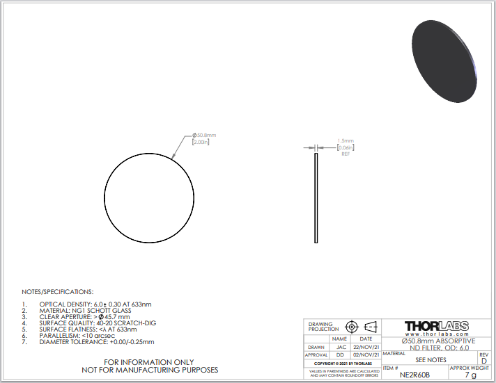 Thorlabs索雷博       NE2R60B   吸收型中性密度滤光片