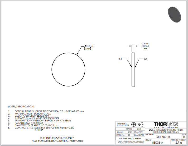 Thorlabs索雷博 NE03B-A 中性密度滤光片