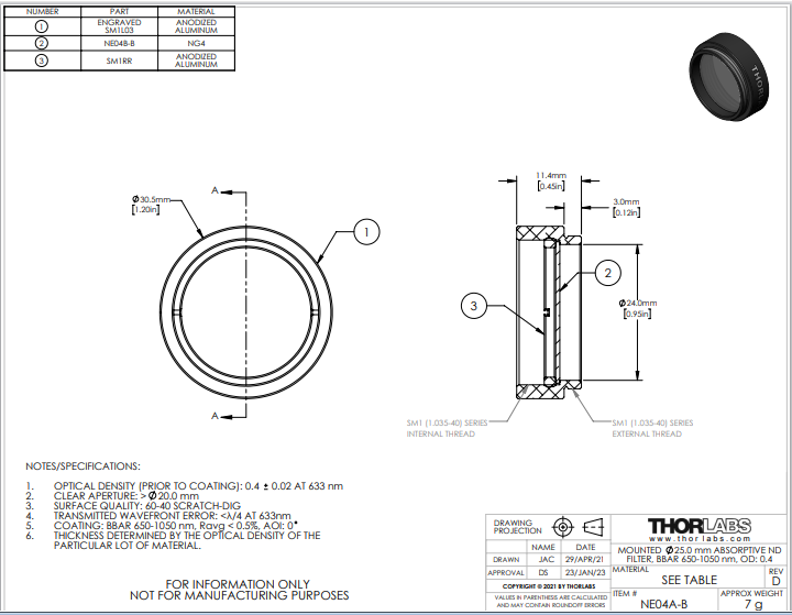 Thorlabs索雷博 NE04A-B 吸收型中性密度滤光片