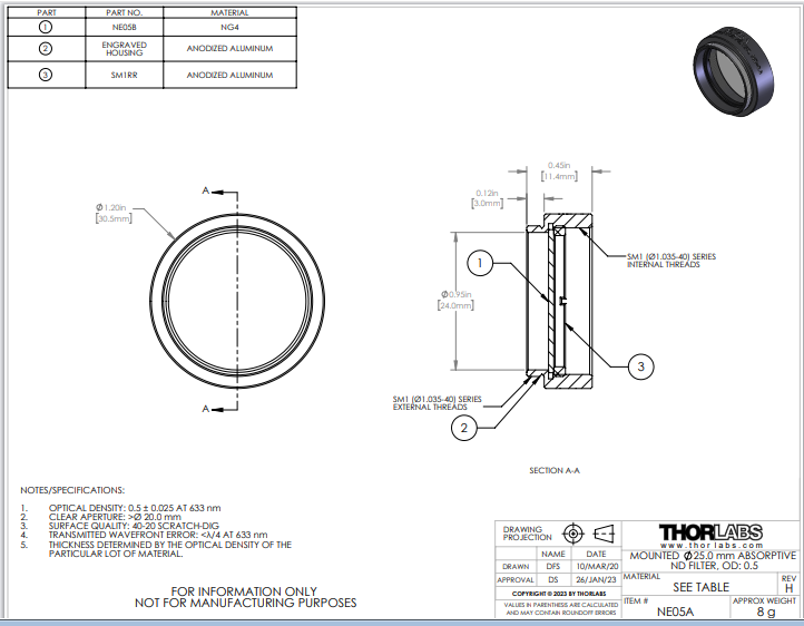 Thorlabs索雷博 NE05A 吸收型中性密度滤光片