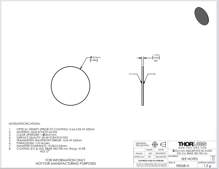 Thorlabs索雷博 NE06B-A 中性密度滤光片