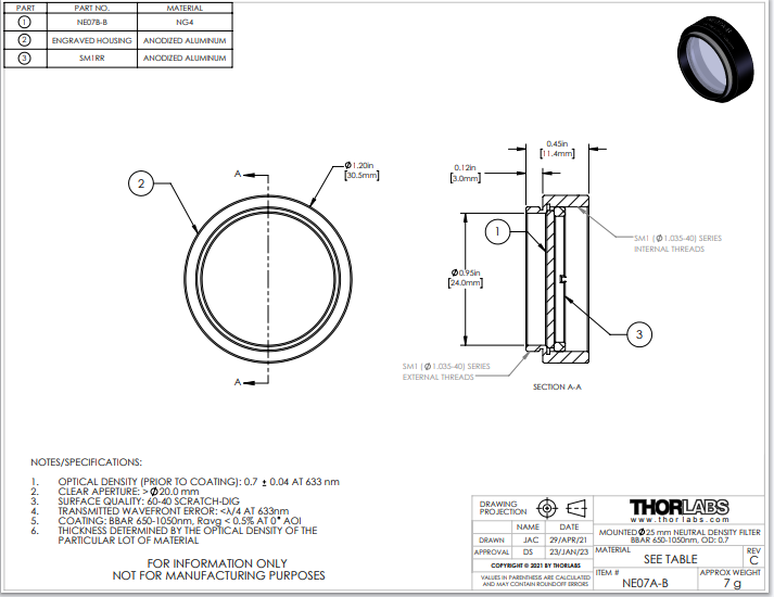 Thorlabs索雷博 NE07A-B 吸收型中性密度滤光片