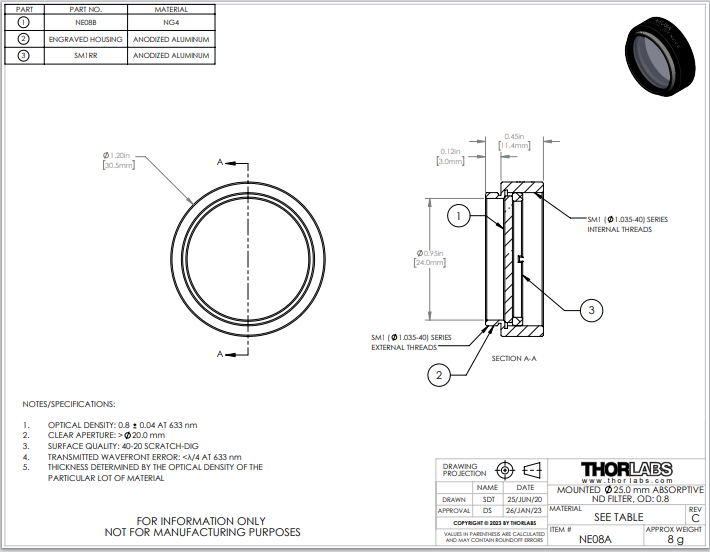 Thorlabs索雷博       NE08A   吸收型中性密度滤光片