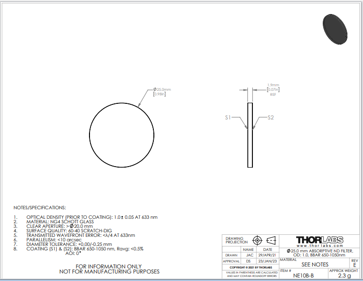 Thorlabs索雷博       NE10B-B   中性密度滤光片