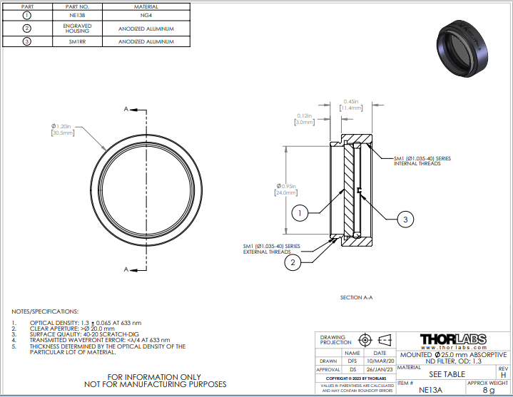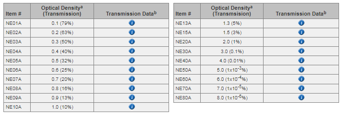 Thorlabs索雷博       NE13A   吸收型中性密度滤光片