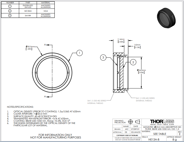 Thorlabs索雷博 NE13A-B 吸收型中性密度滤光片