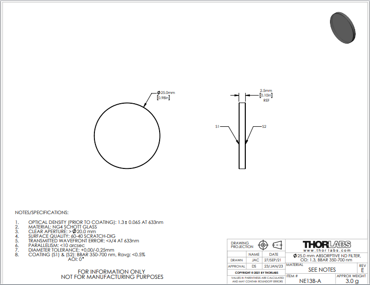 Thorlabs索雷博 NE13B-A 中性密度滤光片