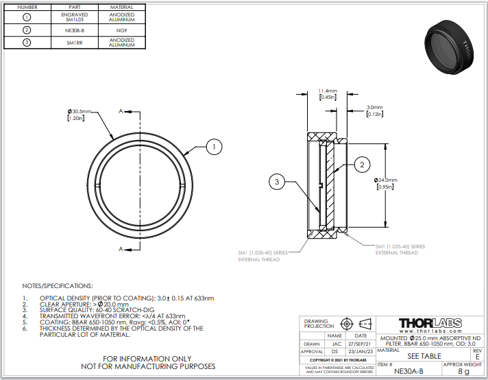 Thorlabs索雷博 NE30A-B 吸收型中性密度滤光片