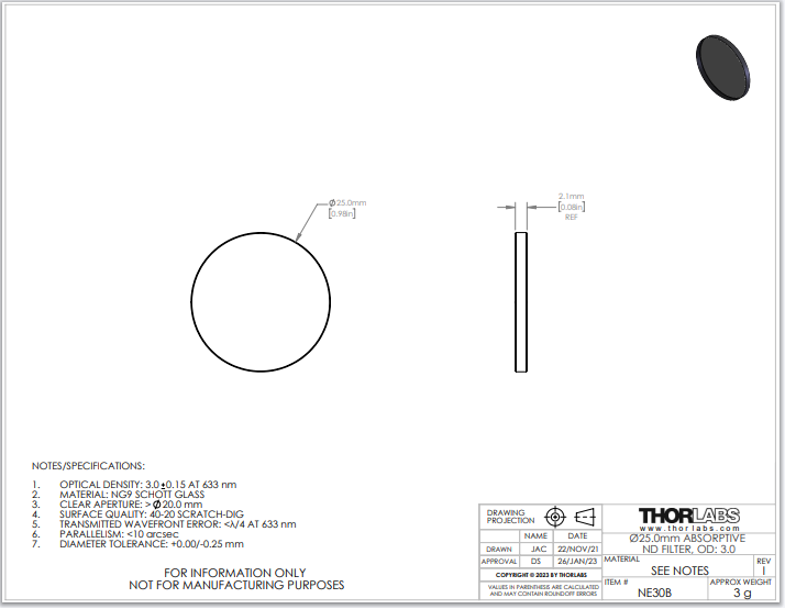 Thorlabs索雷博       NE30B   吸收型中性密度滤光片
