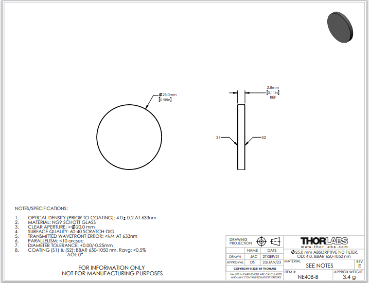 Thorlabs索雷博 NE40B-B 中性密度滤光片