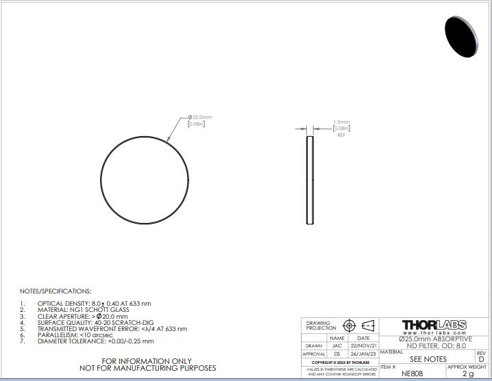 Thorlabs索雷博 NE80B 吸收型中性密度滤光片