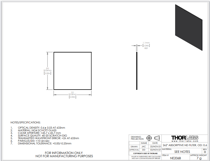 Thorlabs索雷博       NE206B   吸收型中性密度滤光片