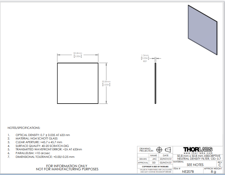 Thorlabs索雷博 NE207B 吸收型中性密度滤光片