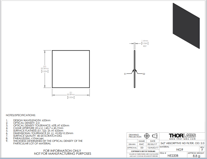 Thorlabs索雷博 NE220B 吸收型中性密度滤光片