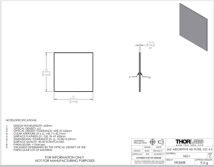 Thorlabs索雷博       NE260B   吸收型中性密度滤光片