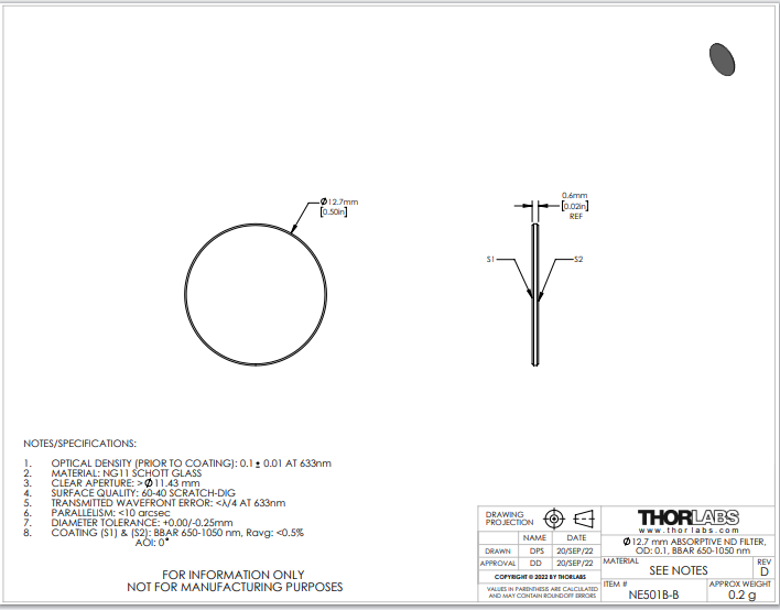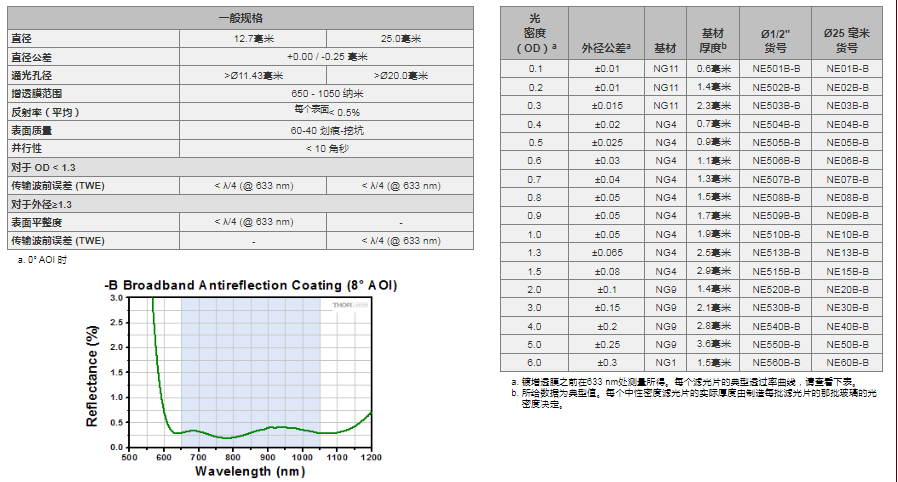 Thorlabs索雷博 NE501B-B 中性密度滤光片
