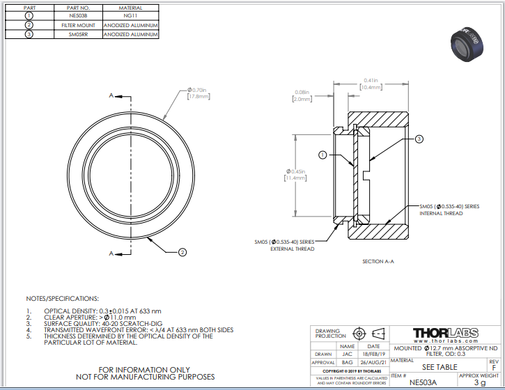 Thorlabs索雷博       NE503A   吸收型中性密度滤光片