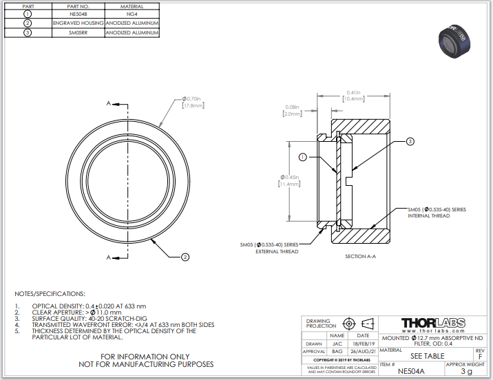 Thorlabs索雷博 NE504A 吸收型中性密度滤光片
