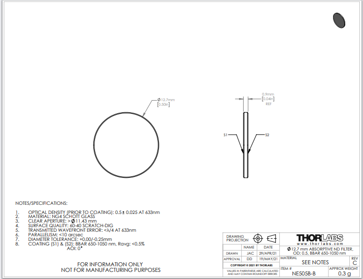 Thorlabs索雷博       NE505B-B   中性密度滤光片