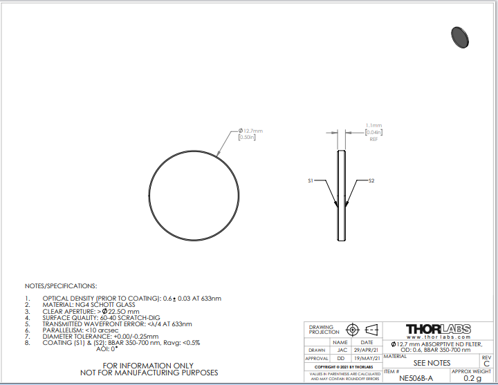 Thorlabs索雷博 NE506B-A 中性密度滤光片