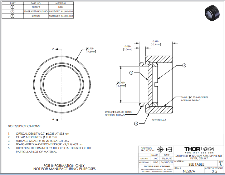 Thorlabs索雷博       NE507A   吸收型中性密度滤光片