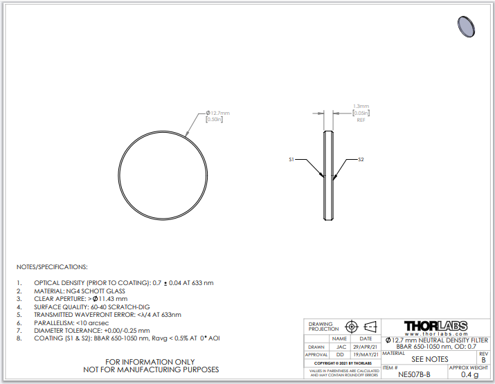 Thorlabs索雷博 NE507B-B 中性密度滤光片