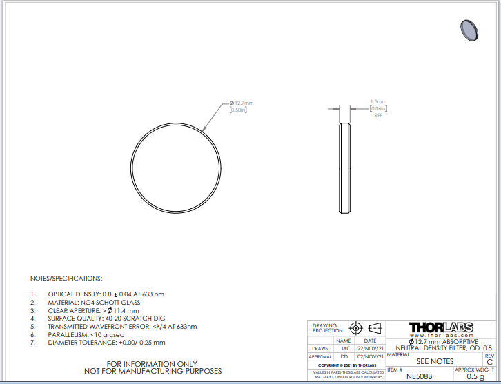 Thorlabs索雷博 NE508B 吸收型中性密度滤光片