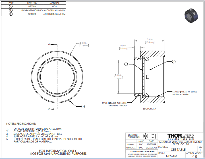 Thorlabs索雷博 NE520A 吸收型中性密度滤光片