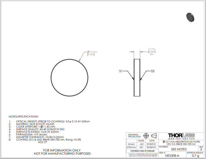Thorlabs索雷博 NE530B-A 中性密度滤光片