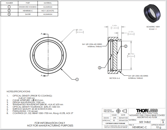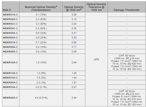 Thorlabs索雷博 NENIR04C-C 中性密度滤光片