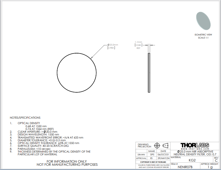 Thorlabs索雷博 NENIR07B NIR中性密度滤光片
