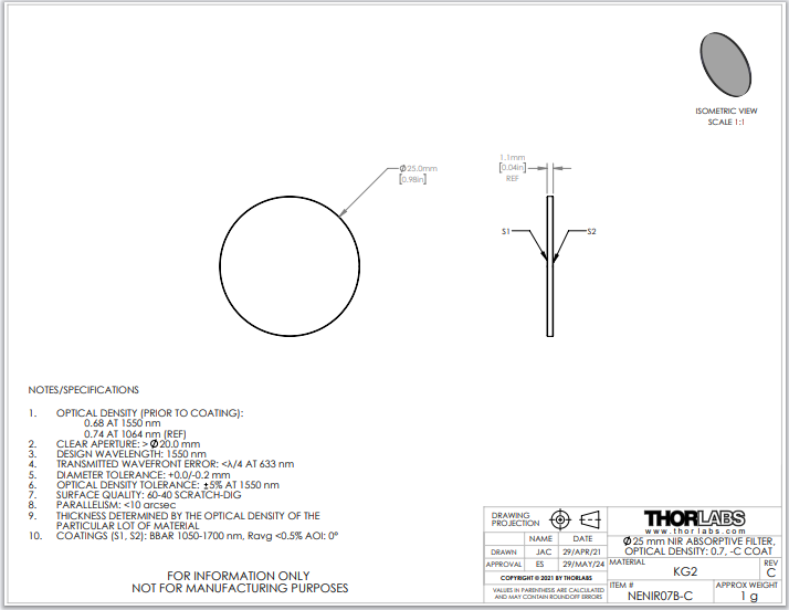 Thorlabs索雷博 NENIR07B-C 中性密度滤光片