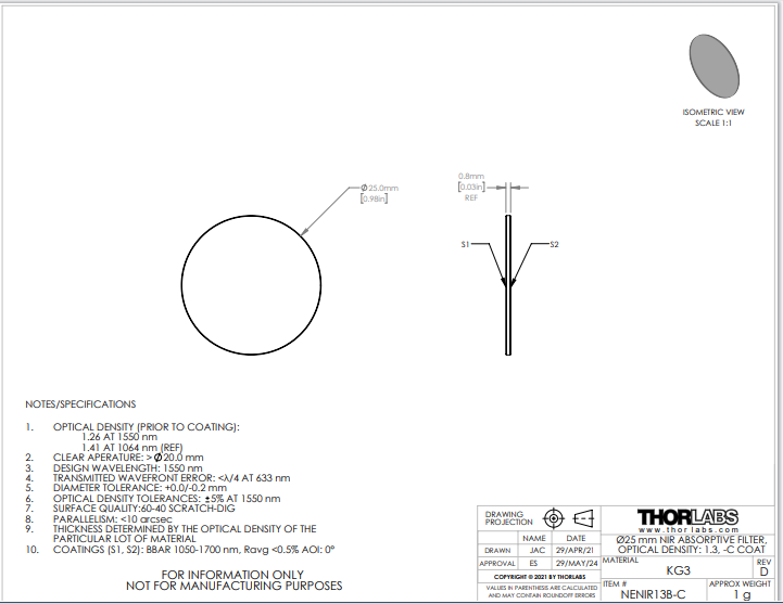 Thorlabs索雷博 NENIR13B-C 中性密度滤光片
