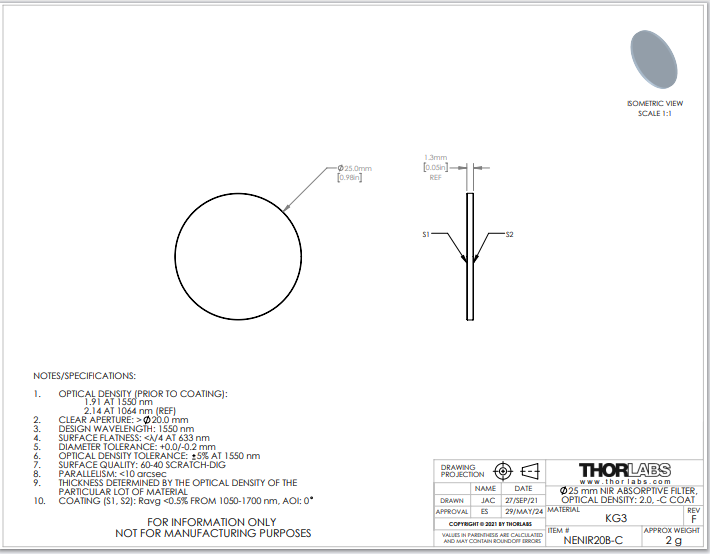 Thorlabs索雷博 NENIR20B-C 中性密度滤光片