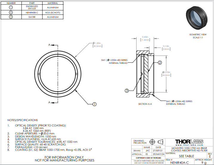 Thorlabs索雷博 NENIR40A-C 中性密度滤光片