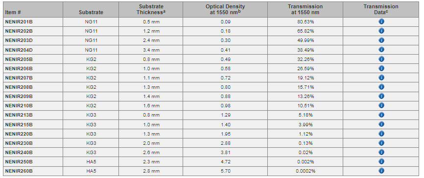 Thorlabs索雷博 NENIR201B NIR中性密度滤光片