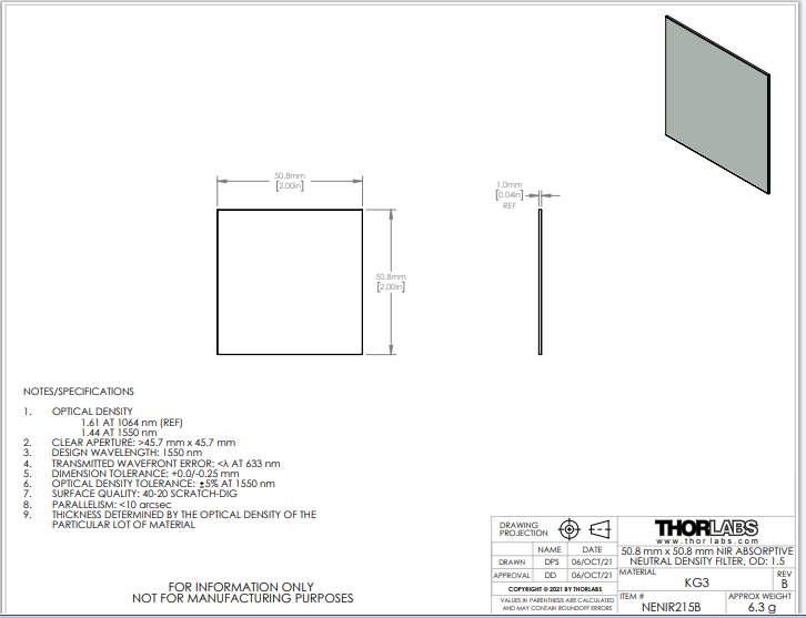 Thorlabs索雷博 NENIR215B NIR中性密度滤光片