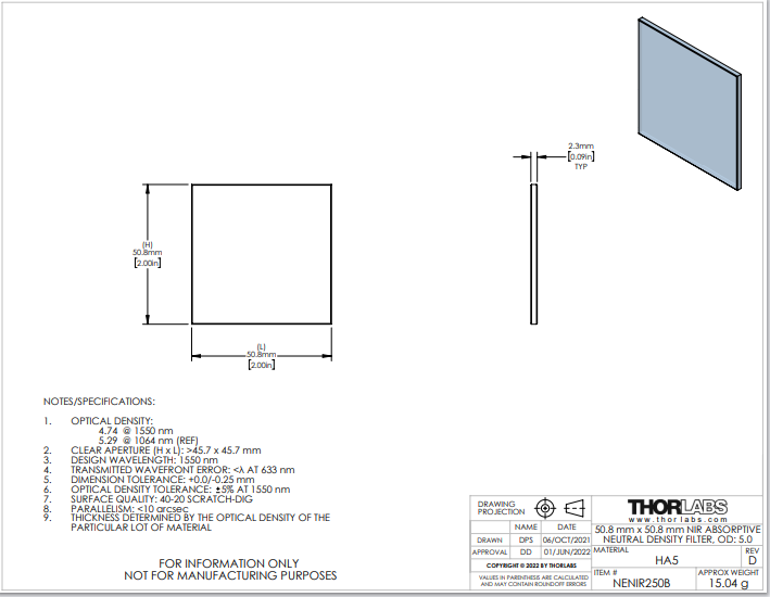 Thorlabs索雷博 NENIR250B NIR中性密度滤光片