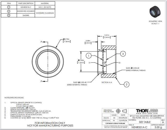 Thorlabs索雷博       NENIR501A-C   中性密度滤光片
