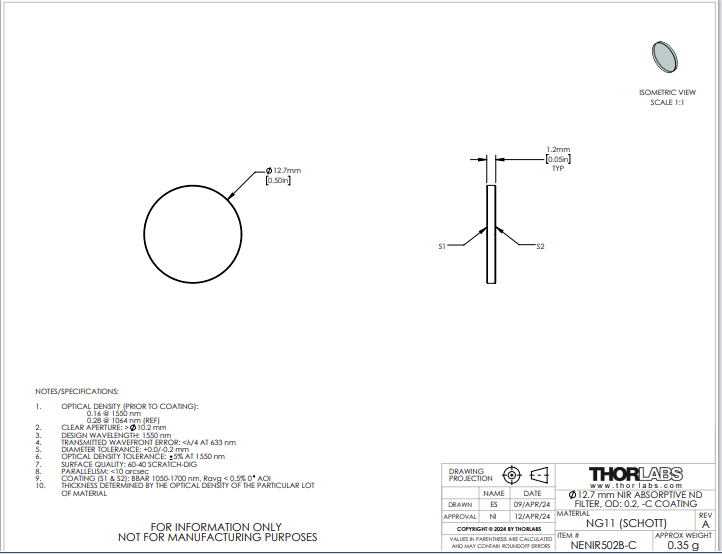 Thorlabs索雷博 NENIR502B-C 中性密度滤光片