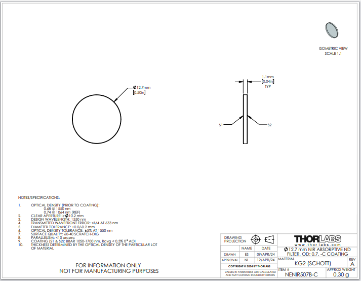 Thorlabs索雷博 NENIR507B-C 中性密度滤光片