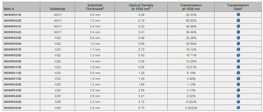 Thorlabs索雷博 NENIR510B NIR中性密度滤光片