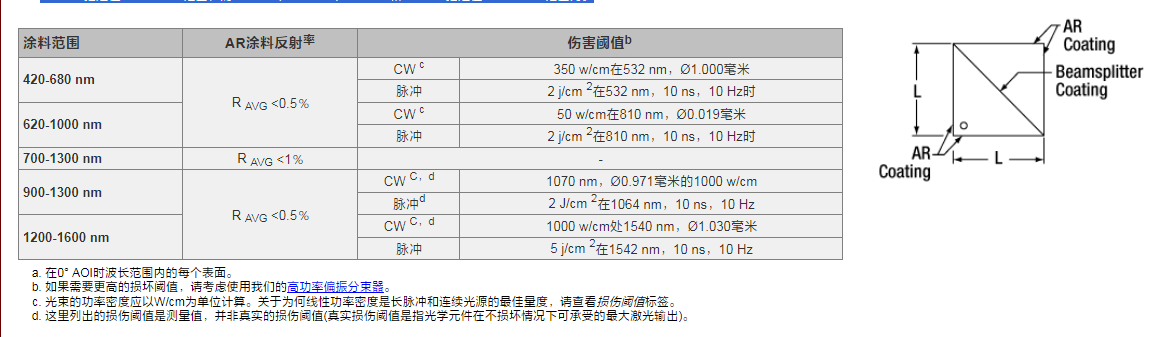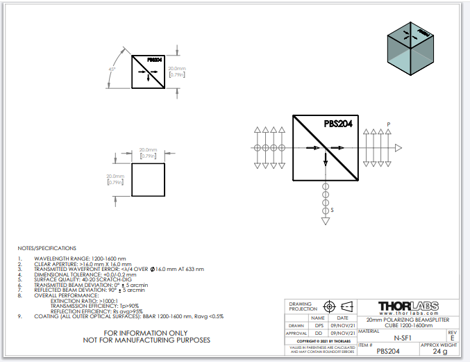 Thorlabs索雷博       PBS204 - 20 mm偏振分束立方体