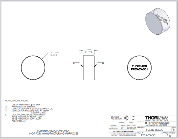 Thorlabs索雷博       PF05-03-G01   平面反射镜