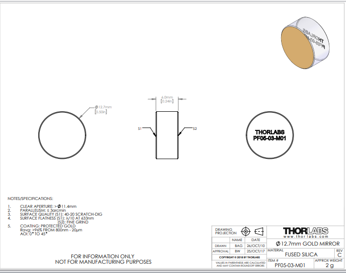 Thorlabs索雷博 PF05-03-M01 平面反射镜