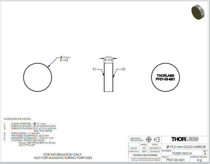 Thorlabs索雷博       PF07-03-M01   平面反射镜